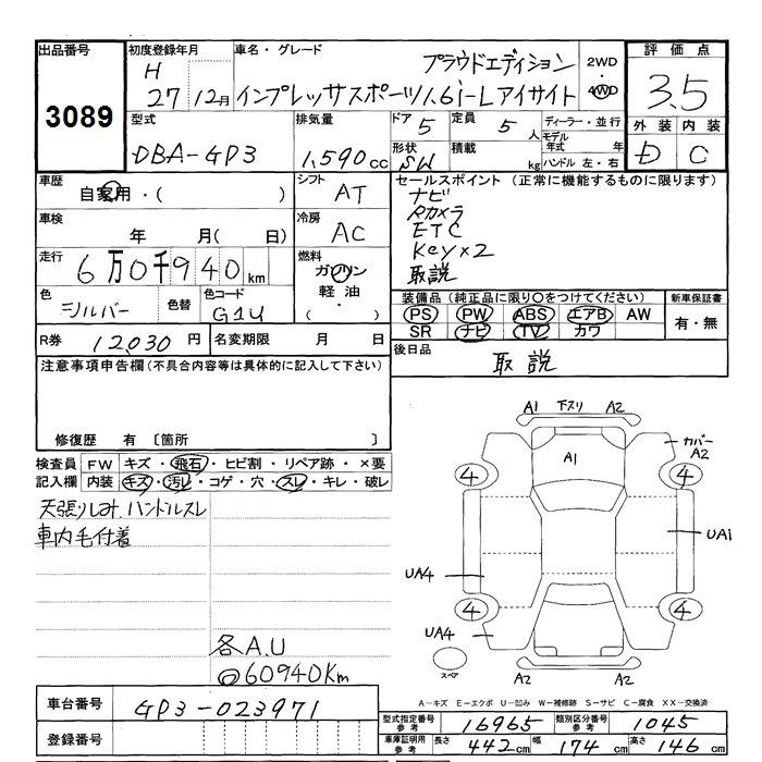| Модификация: | 4WD 1.6I-L EYESIGHT PRA UDO EDITION |